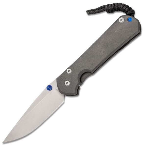 Diese Version verfügt über eine Klinge aus hochwertigem CPM MagnaCut Edelstahl , der die perfekte Balance zwischen Härte, Zähigkeit und Korrosionsbeständigkeit bietet. Das Stonewash-Finish verleiht der Klinge ein dezentes, mattes Aussehen und kaschiert gleichzeitig kleinere Kratzer aus dem täglichen Gebrauch. Der ergonomische Griff aus sandgestrahltem 6Al4V-Titan ist leicht, robust und liegt angenehm in der Hand – und sieht dazu noch toll aus.