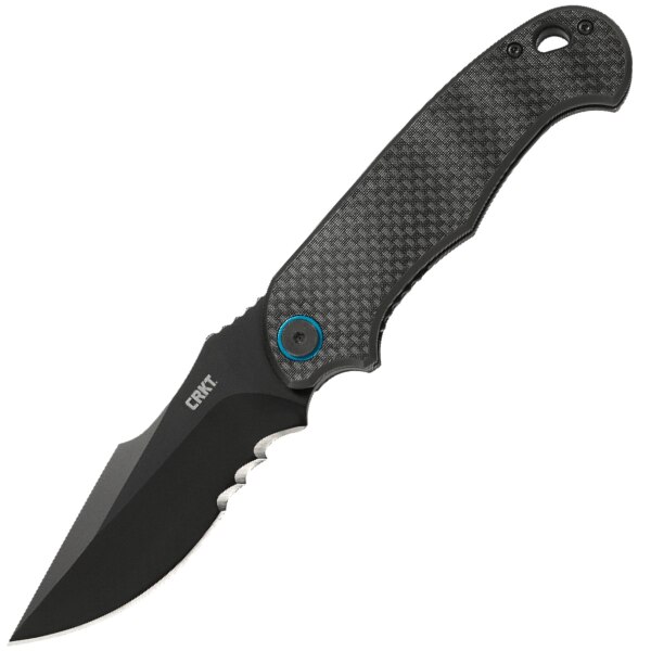 Als der Designer Jim Hammond aus Birmingham, Alabama, den Stift zu Papier brachte, tat er dies mit der Absicht, ein Messer zu schaffen, das gleichermaßen kraftvoll, kompakt und äußerst ästhetisch ist. PSD™ trifft ins Schwarze. Die unverwechselbare Klingenkrümmung eignet sich für tiefe Schnitte und Scheiben, Veff Serrations™ dringt in Seile und Leinen ein, während der doppelte Schliff das Schieben effizienter macht. Der überraschend kompakte Griff aus G10 und Kohlefaser ermöglicht einen festen Vier-Finger-Griff und ist mit einem leuchtend blauen Nieten- und Taschenclip versehen.