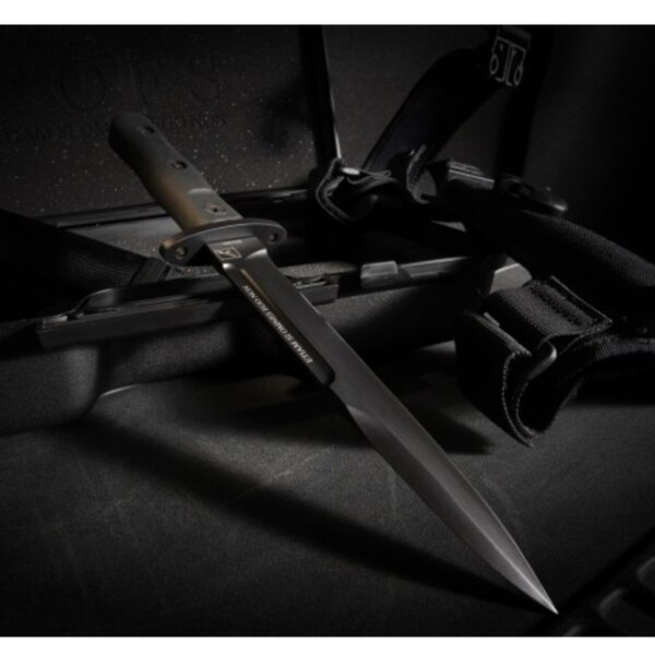 Fixed Knife Extrema Ratio 39-09 ORDINANZA COFS. The result of a project sponsored by the COFS (Command of Operations between Italian Special Forces Forces) and its former Commander-in-Chief, General Bertolini – not to mention championed by knife collectors worldwide – this 39-09 combat knife is a restyling of the “paracadutista assaltatore” type knife from of 1939, a celebrated piece of Italian military history. While maintaining the original shape, structure and proportions, we managed to strengthen, add higher functionality and manufacture this combat knife to current military specifications from the most modern materials. Small changes that make it a highly effective and reliable dagger. The included hard case is designed to be worn around the ankle, in the characteristic manner of Italian paratroopers. The 39-09 ORDINANZA version is coated in black oxide with the COFS logo and slogan. Comes in an ABS engraved case with an ankle holster and a parade belt holster. DATA SHEET Weight g.:338 Weight oz.: 11.9 Blade length (mm): 195 Blade length (in): 7.7 Overall length (mm): 319 Overall length (in): 12.6 Blade thickness (mm): 6.3 Blade Thickness (in): 0.25 Blade Material: BöHLER N690 STEEL (58HRC) Blade Finish: HEATING MIL-C-13924 Main Grid: FLAT Handle Material: FORPRENE
