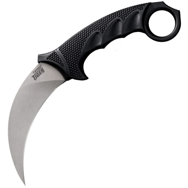 The Steel Tiger is a thoroughly modern tactical interpretation of the Indonesian Karambit. A design collaboration between Lynn C. Thompson and the late custom knife maker Steven Likarich, the Steel Tiger was designed to possess all the best features of this iconic hooked blade and to integrate them seamlessly with modern materials and styling. The Steel Tiger’s deeply curved and needle sharp AUS 8A stainless steel blade is vacuum heat-treated and sub-zero quenched, taper ground and given a stone wash finish for maximum strength, cutting power, edge retention and performance. The durable Griv-Ex core handle fully encapsulates the tang, emerging to create the bolster, thumb-shelf and distinctive finger ring. This core is then injection over-molded with premium Kray-Ex™, creating a superb, non-slip grip that won’t let you down even when your hands are cold or wet. For safety and convenience the Steel Tiger comes with a Military style Secure-Ex sheath that you can attach to your gear or retain on your person via the removable boot/belt clip.