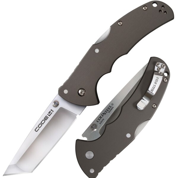 When developing the Cold Steel Code 4, our goal was to create an ultra-thin, ultra-lightweight, highly functional utility knife that is a breeze to carry. There’s a lot of comfort in knowing you’re carrying a good knife, and many of our law enforcement friends talk about how they’re always looking for that one reliable, lightweight blade that can become a permanent part of their everyday carry. .We believe our Code 4 is destined to become this knife! It won’t weigh down your uniform or add unnecessary bulk. It’s a joy to wear, so it’s always at hand when you need it! Each Code 4 is available in a variety of blade configurations, with double-sided pocket clips and thumb pins, and features rugged, hard-anodized gray 6061 aluminum handles, our world-renowned Tri-Ad locking mechanism,