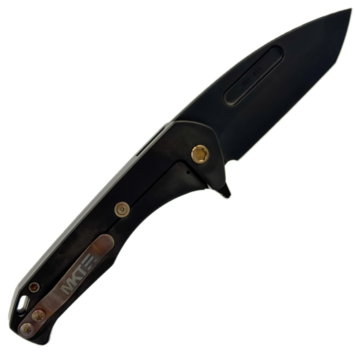 Titanium handle with bronze hardware – strong, lightweight and visually impressive.