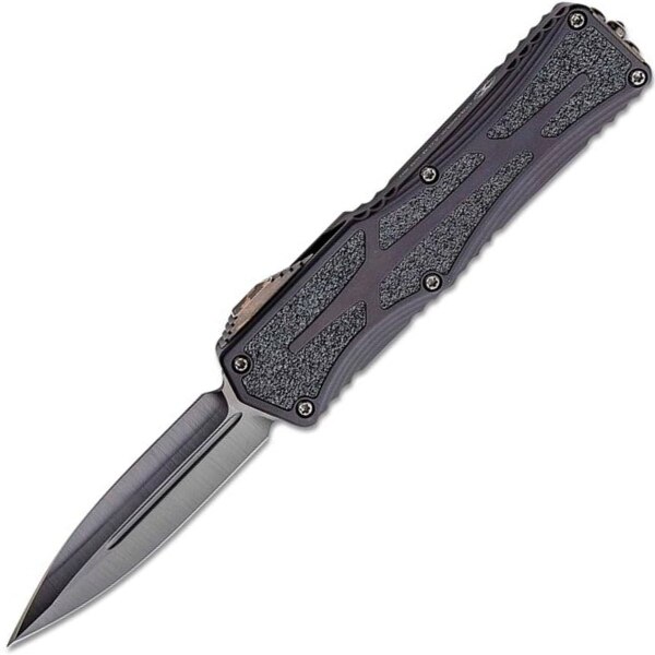 The Colossus double action OTF Auto features an intricately hand-ground blade, overbuilt toughness, faster than lightning action, and fit and finish you’d expect from a high-end knife. Tony Jr. studied the art of the grind from one of the best to ever live and this compound tanto blade is one of the most beautiful money can buy. It’s made from hand-ground Elmax stainless steel with a tactical black DLC finish. The hefty aluminum body is exceptionally ergonomic and features a myriad of black traction inlays on each side and Snakeskin FatCarbon inlaid the actuation switch. The reversible pocket clip is the most subtle thing about this knife. It holds the knife securely in the pocket while subtracting little from the ergonomics, which we love. The blade comes with a bottle of OTF Knife Lube and was proudly handmade in the USA.