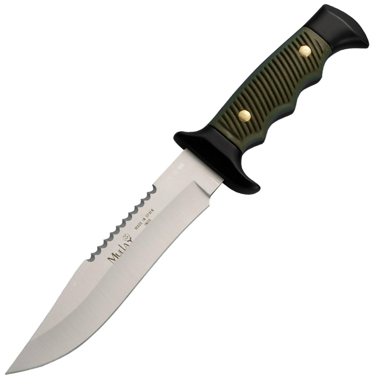 Edition. 14″ overall. 9″ matte satin finish stainless blade with sawback. Hollow handle wrapped in heavy OD green nylon cord. Aluminum butt cap with precision compass. Survival kit. Stainless guard with lashing holes and integrated Phillips and standard screwdrivers. Top grain leather belt sheath with leg tie. Officially licensed reproduction. Limited edition of 10,000.