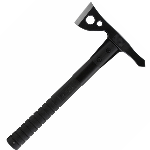 The SOG FastHawk is faster, lighter, more agile, and easier to carry than its sibling the Tactical Tomahawk. This is not to say it is not still powerful, versatile, and functional. It is a tool that will be used for much more than you might anticipate. Chopping, breaking, cutting, hammering, piercing, digging, prying, pounding shaving, notching, opening and throwing are all capabilities well within the FastHawk’s reach. The 420 stainless steel head with a hard cased black coating is mounted to the ballistic polymer handle with heavy-duty bolts and a steel ferrule to insure the strongest integrity. Side hammer checkering insures precision placement when swinging. Carried in a nylon sheath that can be mounted to belt, backpack, or gear. It is a universal tool for modern man.