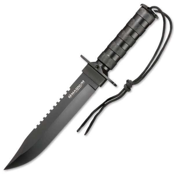 S tímto impozantním nožem na přežití se budete cítit jako doma nejen v místních lesích. 20 cm dlouhá čepel nože vyrobená z nerezové oceli 440A má na hřbetu čepele pilu. V duté rukojeti je uložena souprava na přežití, s níž lze přečkat menší dobrodružství. Čepel je přišroubována k rukojeti a je opatřena šroubovacím uzávěrem se šňůrkou. Nůž na přežití je dodáván s nylonovým pouzdrem a s malým brouskem.