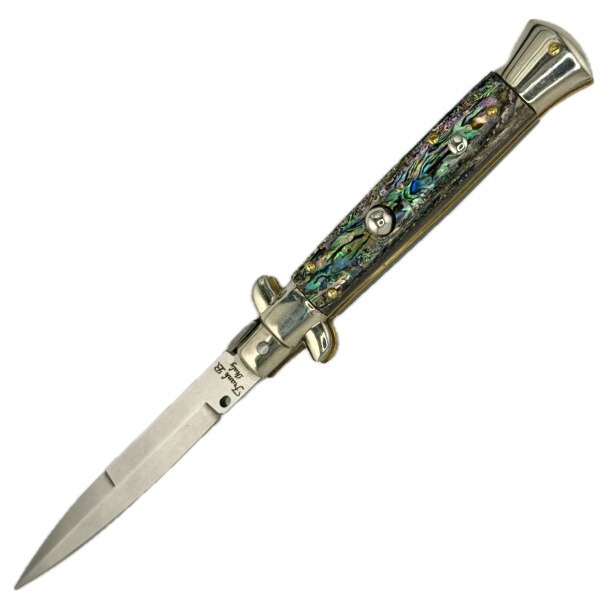 Italské stilettos jsou nejen nástrojem, ale i symbolem elegance a tradice. Fantail Limited Edition 2013 ve variantě Abalone od Franka Beltrame patří mezi ty nejúchvatnější sběratelské kousky. Tento vystřelovací nůž o délce 23 cm (9″) zaujme jedinečnými střenkami z pravé perletě abalone, jejichž duhová hra barev činí z každého kusu naprostý originál. V kombinaci s precizním mechanizmem Swivel EX a jemným rytím se jedná o opravdový klenot mezi stiletty – vzácný, luxusní a nesmírně dekorativní.