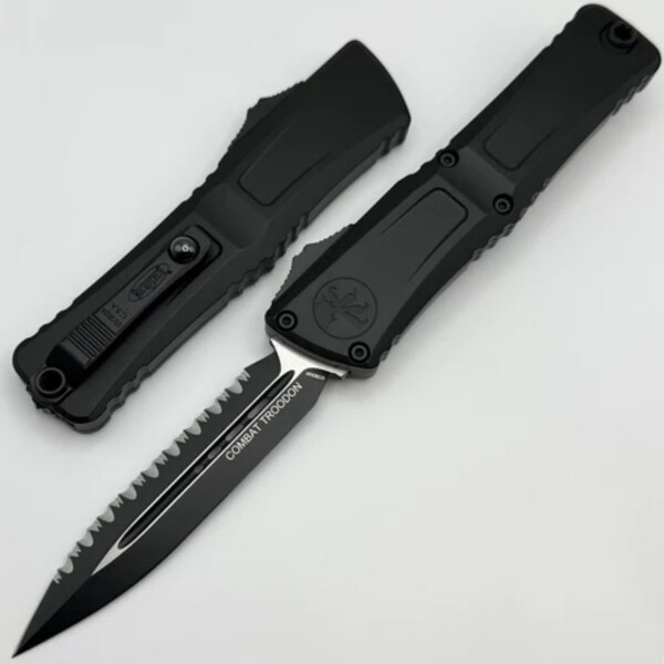 Il Combat Troodon D/E Gen 3 Tactical Black Aluminium, Black è il più grande coltello automatico OTF (Out The Front) della serie Troodon, costruito per un’ampia gamma di applicazioni di utilità. È realizzato con precisione e presenta un meccanismo sofisticato e dannatamente veloce che estende la lama affilatissima. Prodotto e assemblato al 100% negli Stati Uniti. Progettato da Anthony Marfione, produttore di coltelli e proprietario di Microtech Knives.