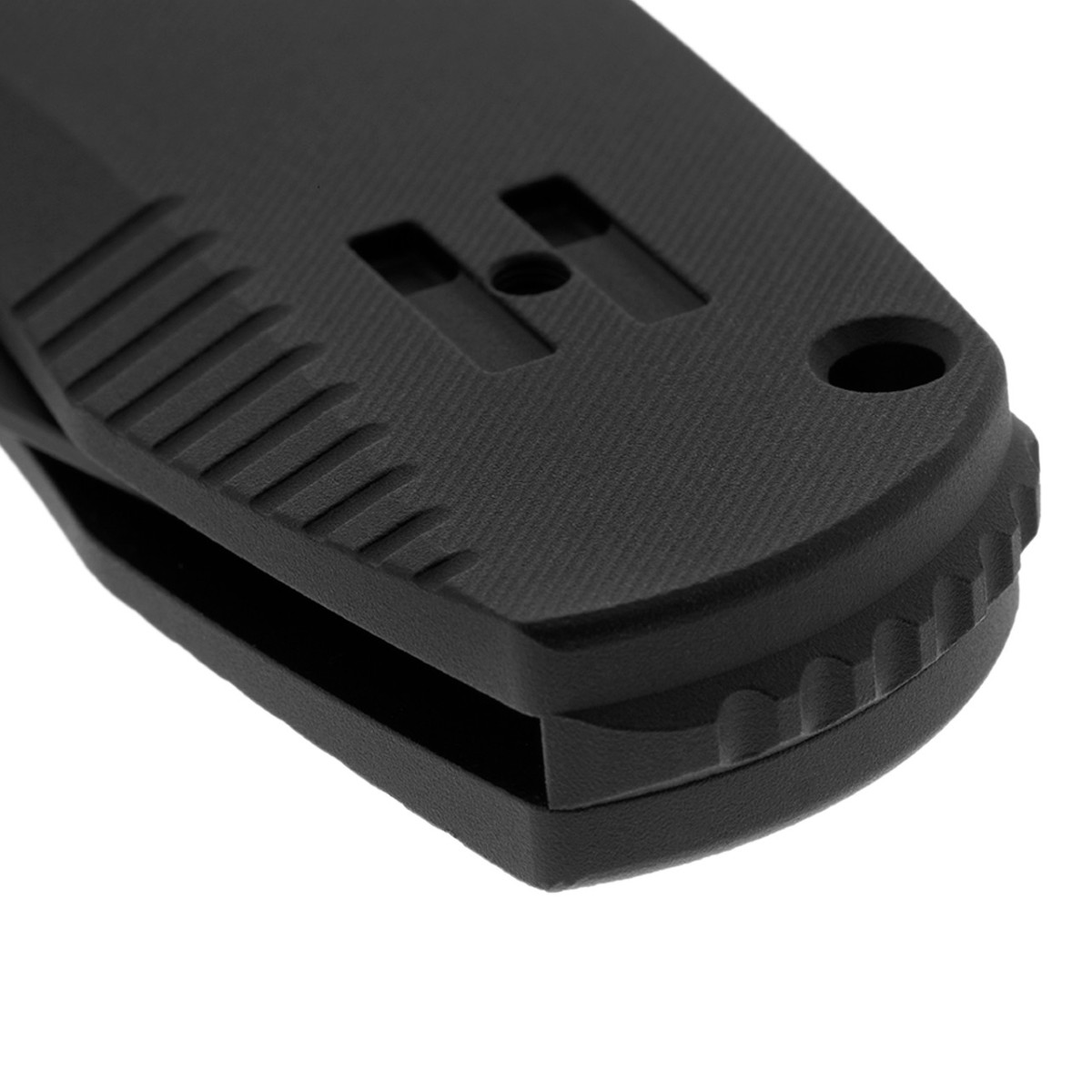 Rukojeť z anodizovaného hliníku s mikrotexturou zajišťuje pevný úchop bez nadměrného dráždění ruky nebo kapsy. Reverzibilní klip a oboustranné ovládání umožňují komfortní použití pro praváky i leváky.