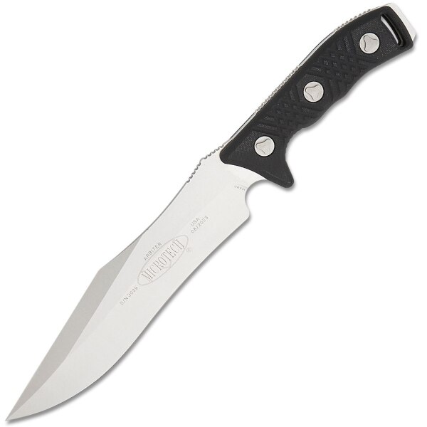 Čepel – strojně broušená dlouhá S/E (Single Edge Clip Point) čepel Bowie, Stonewashed. Navzdory své tloušťce poskytuje Flat Grind vynikající řezné vlastnosti v kombinaci s vynikající trvanlivostí. Velký choil na začátku řezné hrany poskytuje prostor pro prsty pro přesné uchopení. Klín nese logo Microtech, dále sériové číslo a datum výroby. Dlouhá falešná čepel v kombinaci s hmotností nože poskytuje působivé průrazné schopnosti. Na zadní straně čepele zářez pro prst.