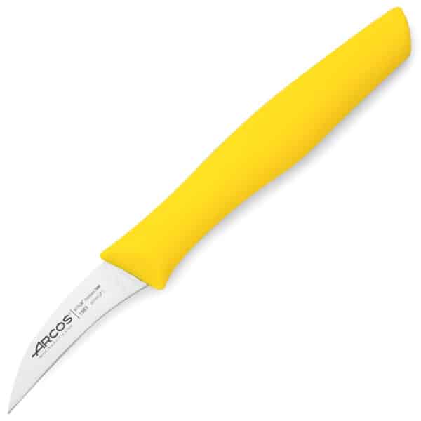 Cuchillo mondador žlutá barva série Nova 60 mm je nástroj navržený především pro loupání a ořezávání zeleniny, kořenové zeleniny a kulatého ovoce. Díky délce čepele 60 mm je ideální pro práci s produkty střední velikosti, jako jsou brambory, mrkev, jablka nebo rajčata.