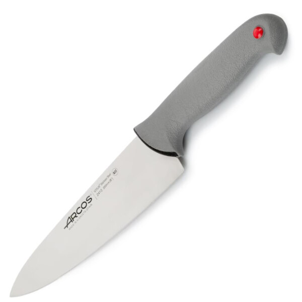 Model 241000 z profesionální řady Arcos Colour Prof Series je klasický šéfkuchařský nůž s čepelí o délce 200 mm, určený pro široké spektrum kuchyňských úkonů – od sekání bylinek a krájení zeleniny až po porcování masa. Tento nůž je stvořen pro profesionální nasazení ve velkokuchyních, jídelnách, gastronomických školách i restauracích.