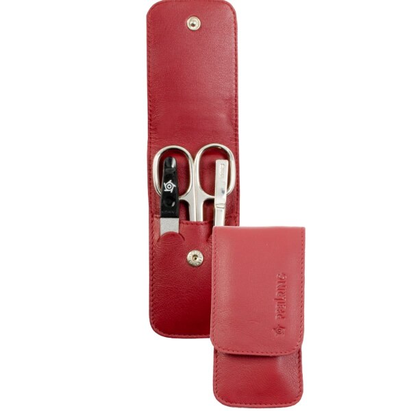Luxusní 3 dílná manikúra německé značky Pfeilring original Solingen v kvalitním koženém červeném pouzdru. Manikúry Solingen jsou proslulé svou dlouhou životností a svým špičkovým zpracováním. Pouzdro je velmi prakticky řešeno a uzavírá se na patent. Nástroje obsažené v manikůře mají celoživotní záruku, která se nevztahuje na poškození zaviněné nesprávným použitím nebo ponecháním ve vlhkém prostředí.