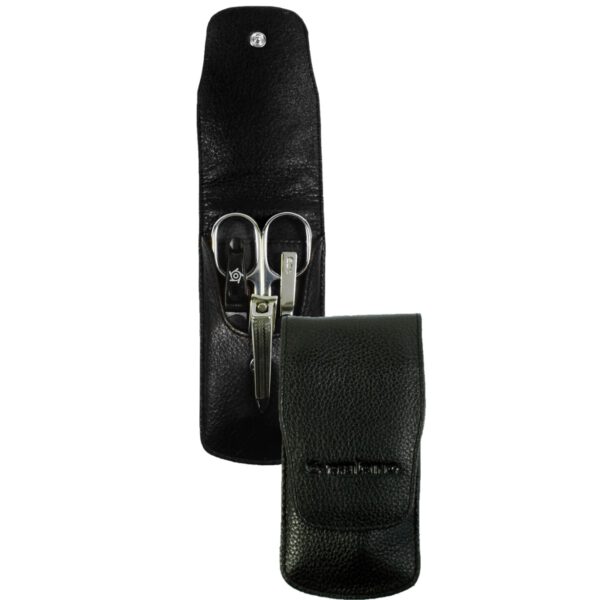 Luxusní 4 dílná manikúra německé značky Pfeilring original Solingen v kvalitním koženém černém pouzdru. Manikúry Solingen jsou proslulé svou dlouhou životností a svým špičkovým zpracováním. Pouzdro je velmi prakticky řešeno a uzavírá se na patent. Nástroje obsažené v manikůře mají celoživotní záruku, která se nevztahuje na poškození zaviněné nesprávným použitím nebo ponecháním ve vlhkém prostředí.