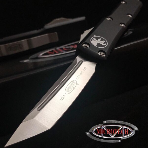 Vystřelovací Nůž Microtech UTX-85 233-4 je vybaven tanto čepelí s jednoduchou řeznou hranou. Má tvarovanou hliníkovou rukojeť z eloxovaného hliníku 6061-T6 s kuličkovým hrotem, který je z ušlechtilé oceli.