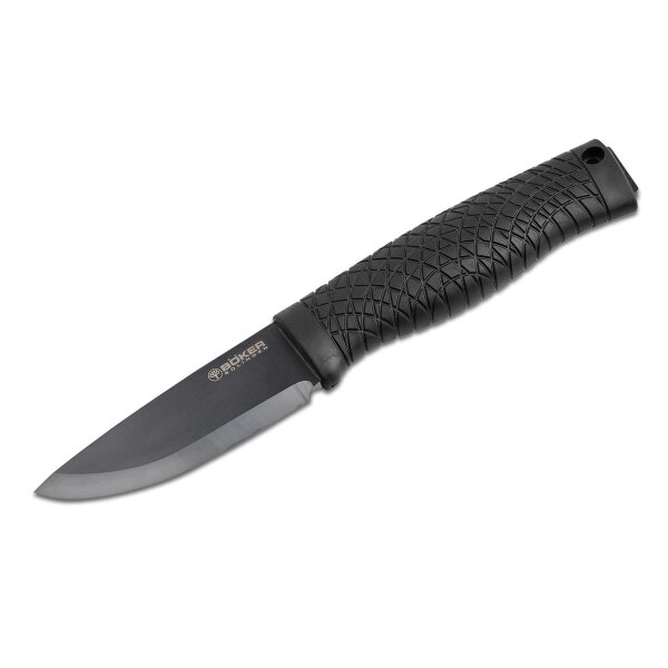 Nůž Naturensöhne MK. I je speciální verzí úspěšného outdoorového/bušlerového modelu Böker Bronco. Zatímco rukojeť v plné velikosti bezpečně obepíná plný hrot a zajišťuje obvyklou vynikající polohu ruky a úchop, čepel nabízí přesně to, co se od nejdůležitějšího nástroje očekává při nekompromisním outdoorovém použití ve 14denní Kanadě: Výjimečné zachování ostří, odolnost proti nárazovému zatížení, odolnost proti zlomení a roztříštění. To je umožněno nejen práškovou metalurgickou ocelí čepele CPM 3V, ale také atraktivním prémiovým povlakem Hardur, který se používá výhradně na vysoce kvalitních řezných a děrovacích nástrojích. Povlak Hardur o tloušťce cca 5 µm, který zahrnuje i řeznou fázi, výrazně zvyšuje životnost čepele a zajišťuje také povrch se sníženým třením. Jako milovníci pravého Scandi neměla volba výbrusu čepele pro Sons of Nature alternativu. Výhody jsou zřejmé: extrémně ostrý úkos nevyžaduje sekundární fázi. Zejména při batonování vykazuje Scandi velmi dobré štípací vlastnosti a vysoký stupeň stability, protože celá tloušťka čepele je zachována přibližně ve 2/3 výšky čepele. Výsledná vyšší hmotnost čepele také zajišťuje větší hmotnost při sekání než u plochého broušení. Jako materiál rukojeti je použit termoplastický TPE. Ten je nezničitelný a kromě dokonalé polohy ruky zajišťuje požadovanou bezpečnost práce za sucha i za mokra. Prémiovou výbavu doplňuje kompaktní pouzdro z kydexu, které díky přiloženému klipu Ulticlip zajistí, že se nejdůležitější nástroj nezničí. Kompletně vyrobeno v manufaktuře v Solingenu.