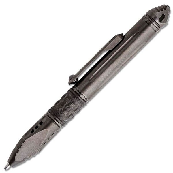 Pero Microtech Kyroh Mini Shot Peened Bolt Action Titanium Pen with Pocket Clip Tritium Cap Insert – 403M-TI-SPTRI