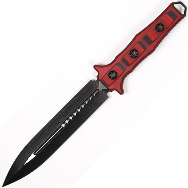 Tento model je vybaven červenou a černou rukojetí G-10. Čepel dýky z nerezové oceli ELMAX v černé barvě DLC s dvojitým ostřím. Black DLC hotový hardware. Čepel má logo Heretic Knives, informace o modelu a sériové číslo. Obsahuje nylonové pouzdro.