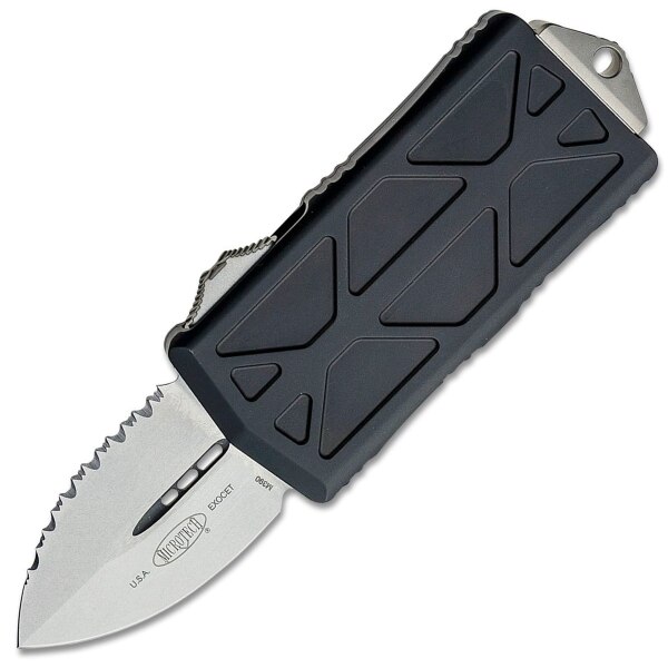 Hvězda řady Microtech 2019, Exocet spojuje užitečnost a každodenní praktičnost v jednom jedinečném balení. Inovativní a první svého druhu, tento automatický OTF ukrývá méně než dvoupalcovou čepel podle Kalifornie a slouží jako spona na peníze, takže je ideální pro každodenní nošení. Jeho vzhled vás může překvapit, když jej poprvé uvidíte, ale pocity úzkosti zmizí při prvním spuštění. Tento nůž střílí rychleji a snadněji než jakýkoli jiný Microtech OTF, takže je to perfektní dárek pro vaši drahou polovičku nebo pro vás.