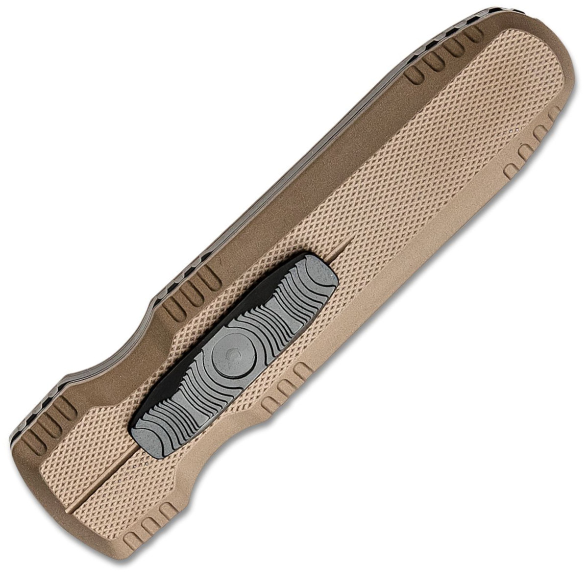OTF mechanismus využívá posuvné ovládání, které současně slouží jako bezpečnostní pojistka. Systém je navržen tak, aby poskytoval pevné uzamčení čepele v otevřené i zavřené poloze.