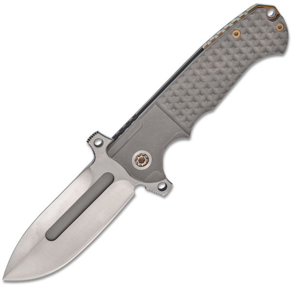 Frézovaný titanový klip (pravostranný, tip-up) s valivou kuličkou, což usnadňuje snadné vytažení nože z kapsy.