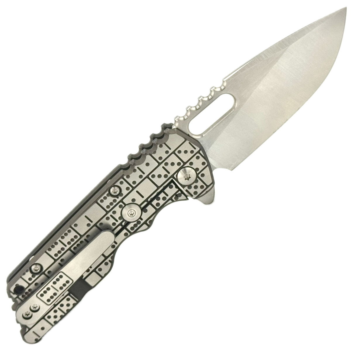 Attn 2 Detail MK 2 Large Satin Magnacut, Drop Point, Rising Grind s Domino Mfer rukojetí je výjimečný nůž, který spojuje robustní výkon, ergonomii a vizuální eleganci. Každý detail – od prémiové oceli, přes perfektní broušení, až po ergonomickou a kontrastní rukojeť – byl pečlivě promyšlen.