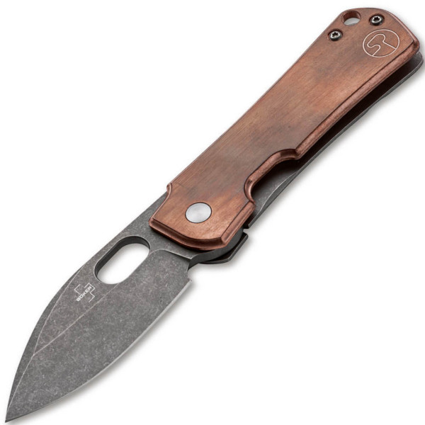 Tato výjimečná vintage verze Boker Plus Gust navržená Sergem Panchenkem se vyznačuje měděnými stupnicemi na přední rukojeti, na kterých se postupem času tvoří jedinečná patina. Čepel droppoint z D2 je opatřena robustní úpravou Stonewash a je spolehlivě zajištěna rámovým zámkem z nerezové oceli. S pomocí velkoryse dimenzovaného otvoru pro palec se dá pohodlně ovládat. S otvorem pro šňůrku, sponou (sklopná/p) a vysoce kvalitním nylonovým pouzdrem pro uložení.