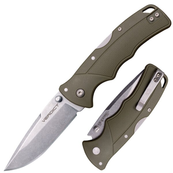 Verdikt je rozhodnutí a řada zavíracích nožů Verdict od Cold Steel poskytuje uživatelům rozhodující možnost každodenního nošení jako skálu. Verdict se vyznačuje osvědčeným a důvěryhodným zámkem Tri-Ad® a je dodáván se dvěma ocelovými a dvěma materiály rukojeti a řadou tvarů čepelí.