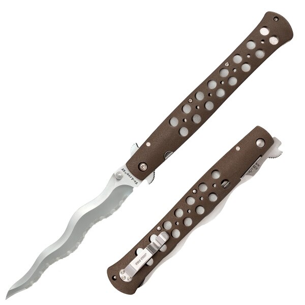 Cold Steel Ti-Lite 6″ Kris Blade 26SXK6S je zavírací nůž, který baví svou jedinečnou estetikou a zároveň praktickou funkčností. Design čepelí typu Kris vychází z tradičních jihovýchodních nožů a dýk, které byly navrhovány pro efektivní průniky a dynamické řezy — a právě tento charakter se přenáší i do kapesní verze Ti-Lite.