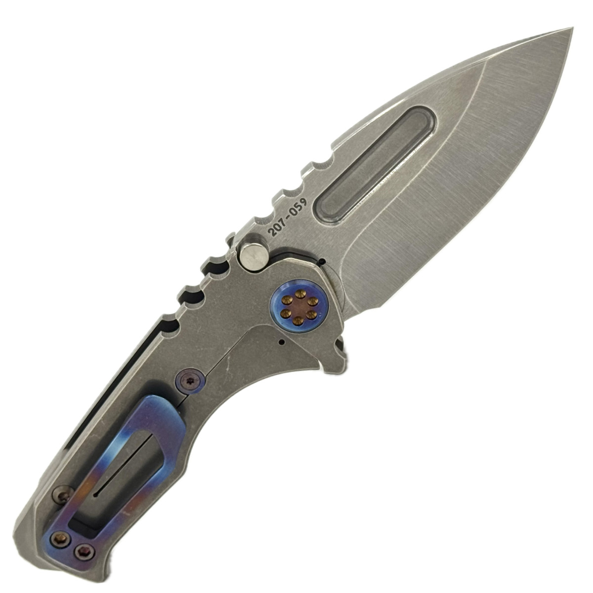 Když poprvé vezmeš do ruky Medford Micro Praetorian T MK008STD-01TM-TFCF-BN, okamžitě pocítíš, že držíš nůž, který spojuje americkou preciznost, robustnost a technickou dokonalost v kompaktním formátu. Tento model je vybaven čepelí z prémiové oceli S45VN, titanovou rukojetí s povrchovou úpravou Tumbled a FLM hardwarem, což zajišťuje nejen vynikající výkon, ale i estetickou přitažlivost. Tvar čepele typu Drop Point dodává noži univerzální využitelnost a odolnost při náročných úkolech.