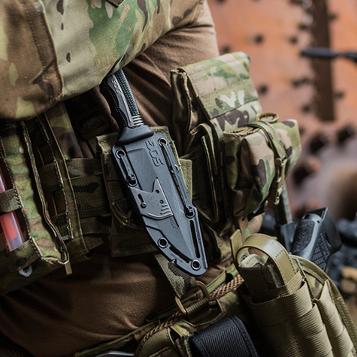 SEAL Strike, najnovší člen rodiny nožov SEAL s pevnými čepeľami, berie všetko, čo sa SOG naučila za roky nasadenia v reálnom svete, a spája to do jedného veľkolepého balíčka. Táto kvalitná čiastočne zúbkovaná čepeľ z nerezovej ocele AUS-8 je vynikajúcim spoločníkom pre outdoorové aj podvodné dobrodružstvo. SEAL Strike je seriózny obchod a nadväzuje na tradíciu zásobovania elitných vojenských síl sveta. Dodáva sa so štandardným tvrdým nylonovým puzdrom alebo deluxe modelom so vstavanou rezačkou šnúr, jednostupňovým strúhadlom, zapaľovačom a väčšími upevňovacími bodmi. Buďte pripravení s plne schopným úderom SEAL.