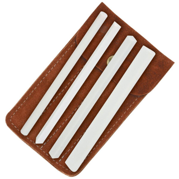 Spyderco Ceramic File Set 400F je čtyřdílná sada brousků z ultrajemné keramiky, určená pro detailní údržbu čepelí, hrotů a nástrojů s komplikovanou geometrií. Obsahuje plochý, čtvercový, trojúhelníkový a zaoblený pilník – vše z extrémně tvrdé keramické slitiny o vysoké hustotě. Díky jemné zrnitosti (fine grit) jsou ideální pro konečné dolaďování, opravy zoubků, ostření háčků, sekáčků, i pro uměleckou práci se dřevem či kovem. Kompaktní semišové pouzdro s patentkou je přenosné a chrání sadu před poškozením.