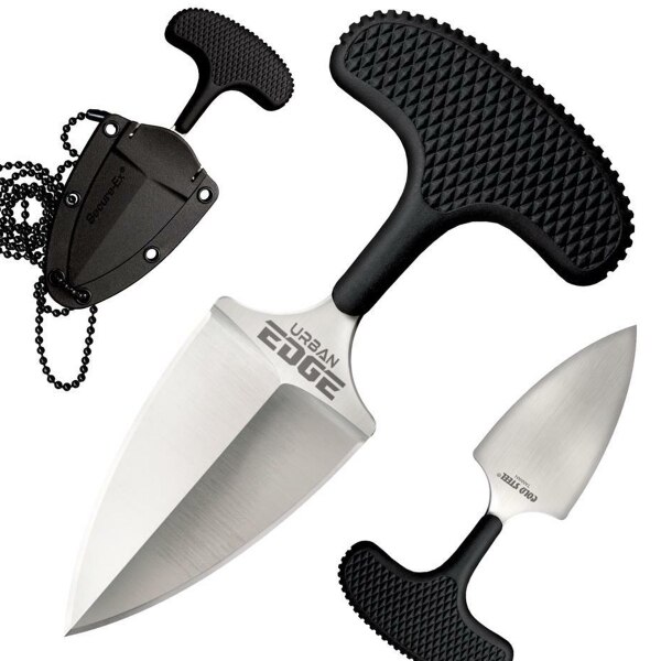 Tlačná Dýka Cold Steel URBAN EDGE. Náš Urban Edge je prekvapivo všestranný a užitočný každodenný nástroj. Jeho bezpečné uchopenie umožňuje používateľovi otvoriť ruku a pritom mať stále plnú kontrolu nad nožom. Mnoho zamestnancov spoločnosti Cold Steel ich používa pravidelne – otvára krabice, zastavuje sa pri podpisovaní dodávok alebo píše na počítačoch alebo tabletoch – to všetko bez toho, aby im nôž opustil ruku! Dostatočne ľahké na to, aby sa dali nosiť ako nákrčník alebo zavesiť na krúžok na kľúče, ale stále obsahuje dostatok rezného výkonu, aby zvládol úlohy, ktoré by boli výzvou aj pre niektoré väčšie nože; Urban Edge je tiež impozantným nástrojom sebaobrany poslednej inštancie. PARAMETRE PRODUKTU Oceľ : Japanese AUS 8A Stainless Farba : Čierna / Strieborná Dĺžka rukoväte : 38,1 mm Celková veľkosť : 101 mm Materiál rukoväte : Long Kray-Ex™ Dĺžka čepele : 63,5 mm Hmotnosť : 53,8 mm Materiál púzdra : Secure-Ex® Neck Sheath Our Urban Edge robí a surprisingly versatile and useful everyday utility tool. Jej secure grip umožňuje používateľovi otvoriť svoje ruky, zatiaľ čo stále má úplnú kontrolu nad nôž. Mnohé z Cold Steel’s employees use them regularly – otvorenie boxy, pausing to znamenie pre deliveries alebo typu na počítačoch alebo tabletoch – všetky bez nôž na ľavej strane ich ruky! still packing enough cutting power to handle tasks that would challenge even some larger knives; the Urban Edge also makes a formidable last resort self-defense tool. Weight: 1.9oz Blade Thickness: 3mm Blade Length: 2-1/2″ Blade Steel: Japonsko AUS8A Stainless Handle Length/Material: 1-1/2″ Kray-Ex Overall Length: 4″ Additional Features: Secure-Ex® Sheath Knife Type: Fixed Blade Length Range: 3-5 in Steel Family: AUS Blade Shape: Spear Point Product Family: Urban Edge