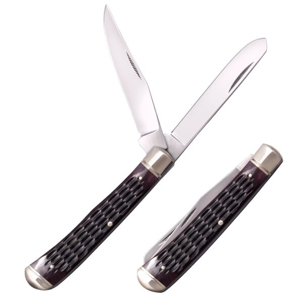Cold Steel Trapper Folding Knife je variáciou Cold Steel na klasický Trapper nôž s posuvným kĺbom. Má rukoväte s autentickou kosťou a sú zvýraznené leštenými kovovými podhlavníkmi. Robustné rukoväte sú podstatne dimenzované pre ťažkú ​​prácu, dokonca aj s rukami v rukaviciach. Je skonštruovaný v tradičnom vzore Jack Knife s dvoma leštenými čepeľami: čepeľou s klipom na prepichnutie a rezanie a čepeľou so špicou na sťahovanie kože a vypitvania, obe sa vyklápajú z jedného konca rukoväte noža. Populárny folklór umiestnil Trapper ako preferovanú voľbu pre drsných outdoorsmanov a hraničných lovcov, ale jeho neodmysliteľná praktickosť ich robí užitočnými pre všetky druhy domácich prác a dobre sa hodí takmer do akéhokoľvek prostredia od mesta po vidiek. Je to skvelý vreckový nôž a je ideálny pre domáce projekty, vonkajšie použitie alebo ako poľovný nôž.
